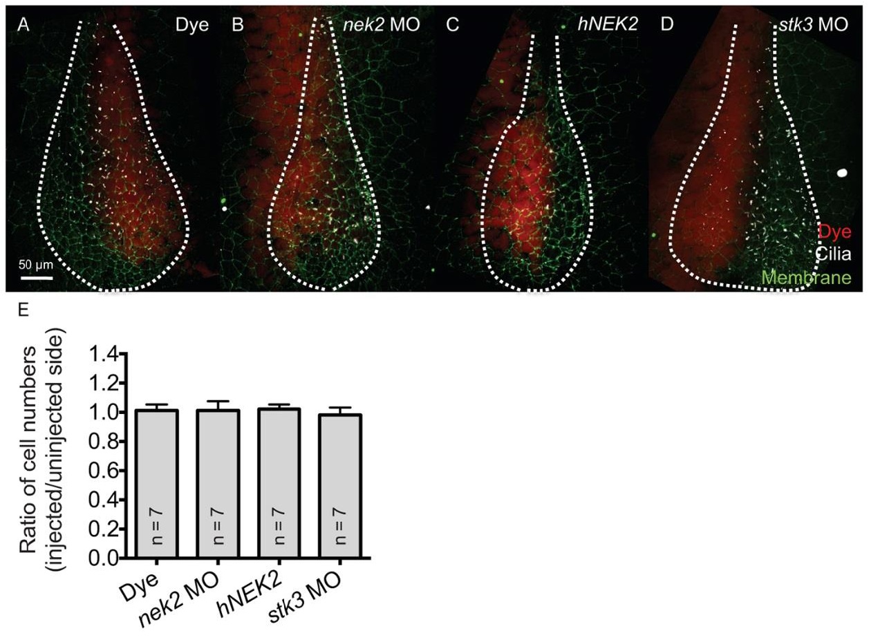 Fig. S3. stk3 knockdown and nek2 knockdown and overexpression do not affect cell