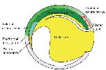 Fig 3. Specification of the anteroposterior (AP) axis and neural induction by vertical and planar signals. The axial mesendoderm possesses an AP polarity characterized by the presence of anterior endoderm, prechordal mesoderm, and chordamesoderm. Wnt and bone morphogenetic protein antagonists are secreted by the anterior endoderm and prechordal mesoderm to promote brain formation. The neuroectoderm can be patterned along the AP axis through vertical induction by region-specific signals transmitted from the axial mesendoderm (small arrows). Planar induction (thick red arrow) acting in the plane of the neuroectoderm mostly patterns the posterior region.