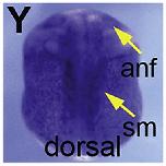 bcar3 (breast cancer anti-estrogen resistance 3) gene expression in Xenopus laevis embryo, assayed via in situ hybridization, NF stage 18, dorsal view, anterior up. |