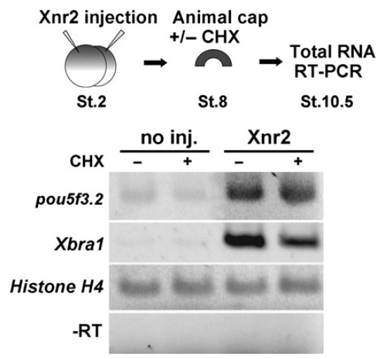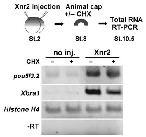 2-cell stage embryos. Animal caps were isolated from the Xnr2-