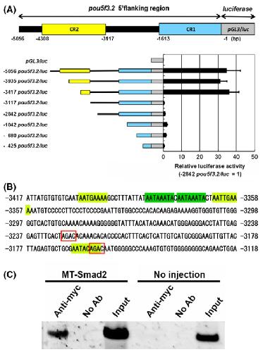 binding to the enhancer region of pou5f3.2 promoter. Myc-tagged