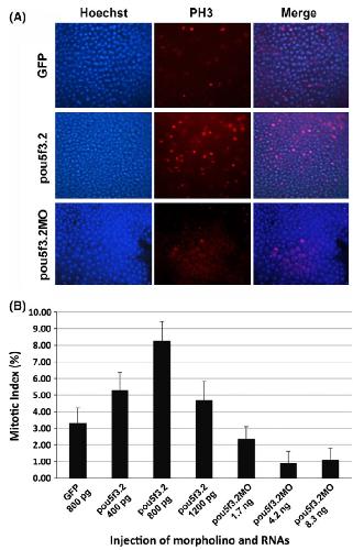 Fig. 5. Cell proliferation in pou5f3.2-injected embryos. (A) Cell