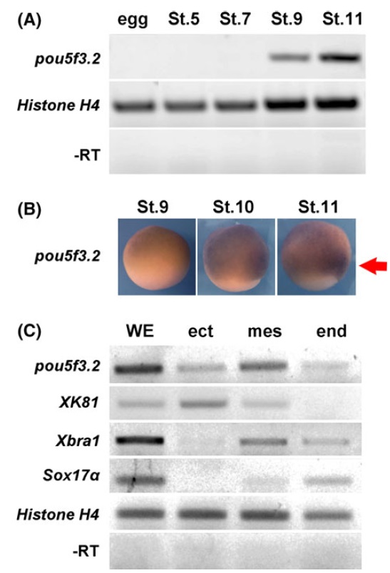 side right. (C) RT-PCR analysis showing pou5f3.2 expression in