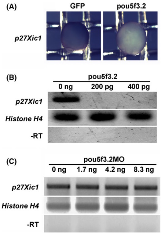 Fig. 6. Gene expression of p27Xic1 in pou5f3.2-injected