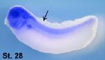 prkcsh (protein kinase C substrate 80K-H) gene expression in Xenopus laevis embryo, assayed via in situ hybridization, NF stage 28, lateral view, anteriorleft, dorsal up.
