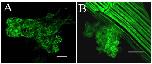 Figure S1. Morphogenesis of Second Hearts. Confocal microscopy was performed on SH (n=41; 73% beating) which were visualised by immunohistochemistry using anti-tropomyosin antibody CH1. (A) 35% of the SH showed morphology similar to a linear heart tube whilst (B) remaining SH were unstructured. (B) shows skeletal muscle staining in addition to SH. |
