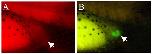 Figure S4. Secondary heart develops without obvious cellular contribution from the host. GATA4-injected reaggregates (CAG-GFP) were transplanted at stage 20 into host embryos at the same stage. For this analysis GATA-4 was injected without lineage tracer (rhodamine dextran) and host embryos were injected with lineage tracer to facilitate visualisation of labelled host cells localisation. An area of a representative embryo carrying a transplant in the caudal area (arrows) shown to reveal (A) lineage tracer or (B) GFP-expressing secondary beating heart in the caudal region of the host. This low-resolution analysis offers no evidence of extensive cellular contribution of the host to the transplant; given the limitations of the method, a small number of host cell contribution to the transplant cannot be excluded. 20 beating transplants were examined with no evidence of host contribution in any. |