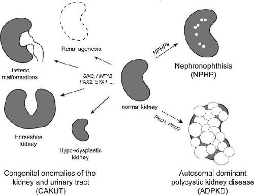 Genes referenced: ace agt anks6 bmp4 eya1 foxc1 hnf1b invs lmx1b nek8 nphp3 pax2 pkd2 six1 six2 sox17a tsc1 wdpcp wnt4 wt1
