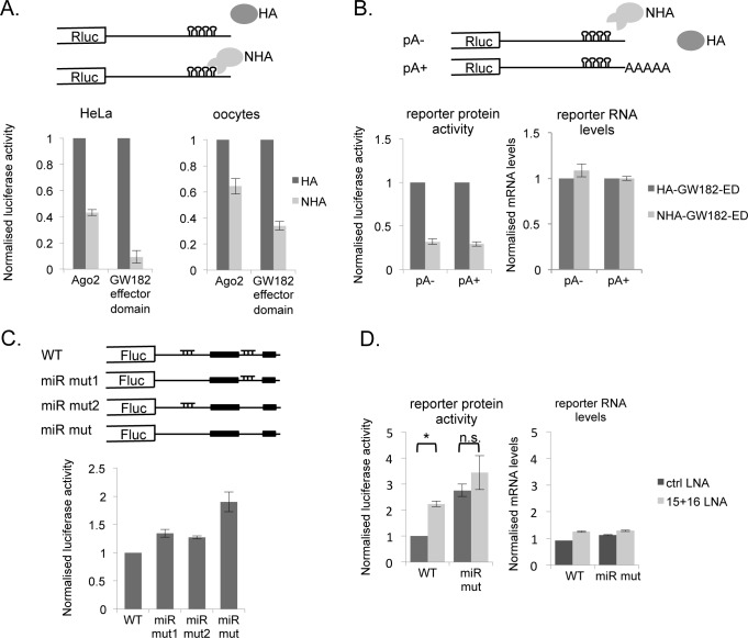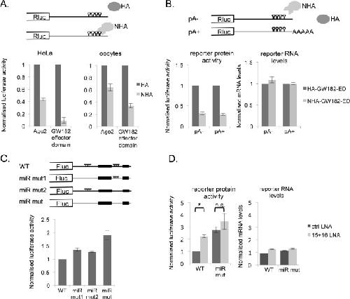 Pillai, Tethering of human Ago proteins to mRNA mimics the miRNA-mediated repression of protein synthesis. 2004, Pubmed