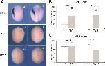 Fig. 5. Sf3b4 depletion results in increased cell-death in the ectoderm. (A)In situ hybridization of Sf3b4MO2-injected embryos (30 ng) at stage 15 showing loss of sox10 expression on the injected side (upper panels). Sf3b4MO2 injection significantly increases the number of TUNEL-positive cells (middle panels). Sf3b4MO2 injection does not affect the levels of cell proliferation as visualized by phosphohistone H3 (pHH3) immunostaining (lower panels). Dorsal views, anterior to top. The injected side (right) is indicated by the lineage tracer (Red-Gal; arrows). (B-C) Graph illustrating the quantification of the number of TUNEL-positive (B) and pHH3-positive (C) cells on the control (Cont) and injected sides in embryos that received unilateral injection of Sf3b4MO2 (20 ng or 30 ng as indicated). The number of embryos analyzed (n=) is indicated on the top of each graph. Values are presented as mean ± s.e.m.; (*) p-value <0.0001 (Studentâs t-test).