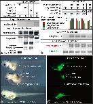 Figure S8. Fusions of Noggin1, Noggin2 and Noggin4 with EGFP retain their molecular and physiological activities. (a) EGFP-Noggin1 and EGFP-Noggin2 inhibit expression of the BMP-specific luciferase reporter, BRE, in Xenopus laevis embryos. The embryos were injected with BRE reporter plasmid, either alone (control) or mixed with EGFP-Noggin1 or EGFP-Noggin2 mRNAs. (b) EGFP-Noggin4 inhibits expression of the Wnt/b-Catenin-specific luciferase reporter, TOPFlash, in Xenopus laevis embryos. The embryos were injected either with TOPFlash reporter mixed with XWnt8 mRNA (control) or with TOPFlash reporter plasmid mixed with XWnt8 mRNA and increasing concentrations of EGFP-Noggin4 mRNA. (c and d). EGFP-Noggin4 mRNA co-injected with mRNA of the BMP inhibitor, truncated BMP receptor tBR, induces development of secondary trunk and head structures (better visible on c), including cyclopic eyes, in Xenopus laevis tadpoles (50%, n=70). Two different sets of tadpoles (obtained in the independent experiments) were photographed at stage 39 and 46 respectively. On c two upper tadpoles are shown from the right side and the bottom tadpole is shown from the ventral side. On d two upper tadpoles are shown from the right side and the bottom tadpole from the left side. |