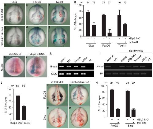 Genes referenced: cdh2 elp3 foxd3 odc1 snai1 snai2 twist1 wnt7b