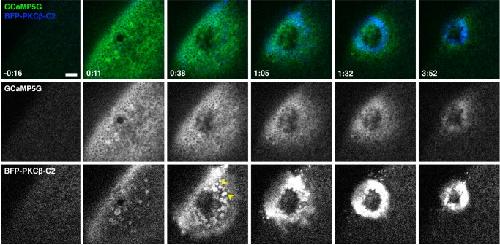 Kunkel, Calcium-dependent regulation of protein kinase D revealed by a genetically encoded kinase activity reporter. 2007, Pubmed