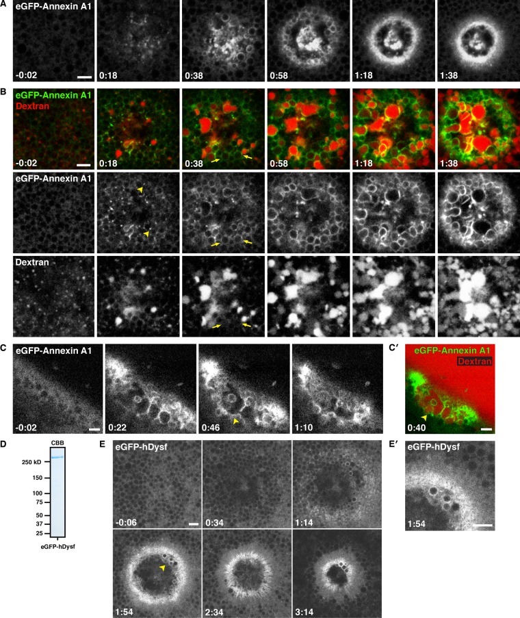 Miyake, Vesicle accumulation and exocytosis at sites of plasma membrane disruption. 1995, Pubmed