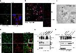 Figure 4. Colocalization of VANGL2 and p62/SQSTM1 in late endosomes.(a) Immunofluorescence staining of SKBR7 cells showed colocalization of endogenous VANGL2 (green) and p62/SQSTM1 (red) in discrete cytoplasmic puncta. Scale bar, 10âμm. The mean Pearson correlation for VANGL2 and p62/SQSTM1 is 0.62, calculated using the Image J software for â¼15 cells per field of view and from 10 images. (b) Partial colocalization of VANGL2 and p62/SQSTM1 in late endosomes of SKBR7 cells stained with the LAMP1 marker. Scale bar, 20âμm. (c) SKBR7 ells were cultured in a nutrient-deprived medium and treated with 100ânM bafilomycin A1 (6âh) before fixation. Double labelling against VANGL2 (arrowheads) and p62/SQSTM1 (arrows), as described in Methods, showed accumulations of both markers in vesicular structures probably resembling endosomes/amphisomes. Scale bar, 200ânm. (d) IMCD3 cells were treated with PBS or EGTA (5âmM) for 30âmin. Immunofluorescence and confocal analysis were performed using the indicated antibodies. Scale bar, 10âμm. Inserts show colocalized VANGL2 and p62/SQSTM1. (e) The VANGL2âp62/SQSTM1 complex was recovered in confluent SKBR7 or IMCD3 cells with 2G4 mAb (IP VANGL2) but not a control antibody (IP IgG2a ctrl) as seen using western blot analysis with the indicated antibodies. The complex was more abundant in cancer cells (SKBR7) than in polarized cells (IMCD3). Note that human (SKBR7 cells) and murine (IMCD3 cells) p62/SQSTM1 run at different molecular weights. (f) Lysates of confluent IMCD3 cells treated for 30âmin with PBS or EGTA were subjected to 2G4 mAb immunoprecipitation (IP VANGL2). Immunoprecipitated proteins were probed by western blot analysis with the indicated antibodies. Increased amounts of VANGL2âp62/SQSTM1 complexes were recovered after EGTA treatment. |
