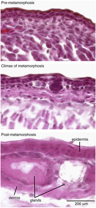 Schreiber, Tadpole skin dies autonomously in response to thyroid hormone at metamorphosis. 2003, Pubmed , Xenbase