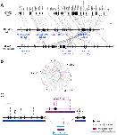 Fig. 2. A chromosomal inversion and transposable elements of the q-subtelomeric region that includes the W/Z-specific loci in chromosome 2L. (A) Synteny analysis of the q-subtelomeric region that includes the W-specific locus in chromosome 2L (XLA2L) and its corresponding regions in X. laevis chromosome 2S (XLA2S) and X. tropicalis chromosome 2 (XTR2). Synteny in XTR2, XLA2S, and XLA2L was investigated using X. tropicalis v9, the unprocessed X. laevis genome v9.1, and corrected X. laevis genome v9.1, respectively. Triangles indicate genes and the tips correspond to their 3â² ends. Olfactory receptor (or) gene clusters are indicated by squares. Magenta and blue lines represent the regions of the W-specific sequence and BAC clones used for FISH analysis, respectively. The q-ends are to the right side of the chromosomes. (B) A circos plot made based on (A). A red arrow indicates the W/Z-specific locus. c, centromere side; t, telomere side. (C) Transposable elements (TEs) in the W/Z-specific and their surrounding regions on the W and Z chromosomes (XLA2L) in X. laevis. The TE density was analyzed using the CENSOR program (http://www.girinst.org/censor/index.php). TpA_Harb and TpB_Harb were identified by BLAST analysis. Magenta and cyan lines represent W- and Z-specific regions, respectively. Triangles indicate genes and the tips correspond to their 3â² ends. |