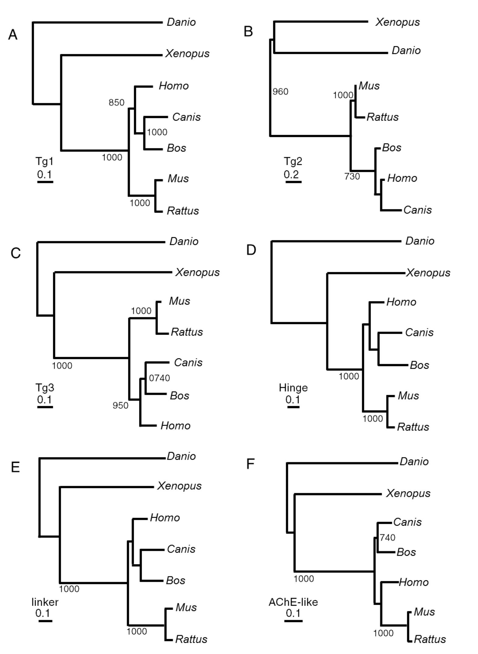 Phylogenetic analysis of the human thyroglobulin regions.