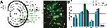 Fig. S4. Human and Xenopus mid1/Mid1 affects fate of retinal precursor cells similarly. (A) Schematic of the retina showing the different cellular layers and retinal cell types. The picture on the right illustrates a clone of GFP-positive cells following lipofection. Cell types are identified according to their position in the layers and their morphology. (B) Human or Xenopus mid1 expression plasmids together with GFP or GFP plasmid alone were lipofected into the area of the eye prospective retinal field at NF stage 17. At NF stage 41, cryosections were done, and the fluorescent cells in the central retina were counted. The different cell types were identified according to their morphology. The diagram shows the percentages of the different cell types for GFP-lipofected embryos (green, n = 40), human Mid1 (light blue, n = 24), and Xenopus mid1 (dark blue, n = 17); error bars represent SEM. AM, amacrine cells; BI, bipolar cells; GC, ganglion cells; HOR, horizontal cells; MU, Müller cells; PR, photoreceptor cells. |