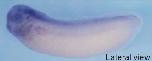 hace1 (HECT domain and ankyrin repeat containing E3 ubiquitin protein ligase 1) gene expression in Xenopus tropicalis embryo, assayed via in situ hybridization, NF stage 3, lateral view, animal up. |