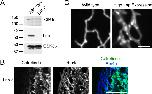 http://dx.doi.org/10.7554/eLife.18605.021Figure 8—figure supplement 1. ER morphology in U2OS cells lacking or overexpressing Lnp.(A) Extracts of wild type U2OS cells and a Lnp-deleted U2OS clonal cell line were analyzed by immunoblotting with Lnp and Rtn4 antibodies. Equal amounts of total protein were loaded, and GSK3β was used as a loading control. (B) Peripheral ER in a U2OS cell lacking Lnp expressing GFP-calreticulin from the endogenous promoter. The cells were fixed and analyzed for GFP fluorescence and for endogenous Rtn4a, using specific antibodies and fluorescently labeled secondary antibodies. Scale bar = 10 µm. (C) Peripheral ER in wild type U2OS cells and cells highly expressing Lnp-mCherry. The ER is visualized by GFP-calreticulin expressed under the endogenous promoter. Scale bar = 2 µm.DOI: