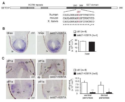 Fig. 4. Setd7-H297A histone methyltransferase mutant lacks pancreatic