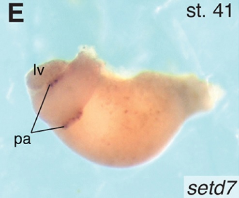 14) Xenopus embryos. In C, yellow arrowheads indicate setd7 transcript in the dorsal cells
