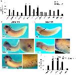 gastrula stage sample (set to 1). Error bars represent ± SEM. *P < 0.05. (B) Expression level of