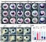 Fig. S1. Tbx3 is expressed in a pattern consistent with a role in eye formation. Posterior (A,E) and anterior (B-D) views of intact embryos showing the expression pattern of tbx3 at the indicated developmental stages. (F-H) Stage 15 embryos stained by whole mount in situ hybridization, then cut midsagittal (F,G) and parasagittal (H) to reveal internal tissues expressing tbx3. (I) RT-PCR of isolated eye fields at the indicated stages detecting the expression of transcripts for tbx3.L and tbx3.S homeologs. Abbreviations: dbl, dorsal blastopore lip; anp, anterior neural plate; ef, eye field; cg, cement gland; ef-m, eye field - midline; ef-a, eye field - eye anlagen; bp, blastopore; vim, ventral involuting mesoderm; dm, dorsal mesoderm; arch, archenteron; pp, prechordal plate; sne, sensorial layer of neuroectoderm; ene, epithelial layer of neuroectoderm; vm, ventral mesoderm; 18-RT, stage 18 minus reverse transcriptase control. Scale bar, 200 μm. |