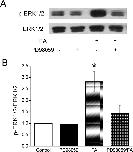 Figure 6. Effects of PD98059 onERK1/2 phosphorylation in H441 cells.(A) Representative western blot of phosphorylated ERK1/2 in untreated H441 cells (Control), after pretreatment with PD98059 (PD98059), after treatment with formaldehyde (FA), and after pretreatment with PD98059 for 30âmin prior to the addition of formaldehyde (PD98059/FA). Lanes shown in this figure are from the same western blot. (B) Graphical representation of data obtained from three sets of western blots and quantified using gray analysis (p-ERK1/2/ERK1/2). Data are shown as the meanâ±âSE, *Pâ<â0.05, compared with control.