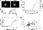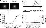 Figure 4. Fluorescence dequenching and proton depletion. (A) Fluorescence image of a typical patch expressing Hv1-Venus and approximation of its geometry by a truncated cone with the indicated dimensions used in the model in Eq. 4. (B) The value of the observed dequenching at 80 mV is plotted as a function of the current for that particular patch also at 80 mV. All of the experiments in this figure were obtained with an intracellular solution of pH 5.5, with the exception of those patches represented by the open circles. The continuous red curve is the dequenching as a function of current magnitude predicted by Eq. 4. The parameters that went into Eq. 4 were rp = 10 µm, ro = 5 µm, lp = 15 µm, Ka = 7.08 × 10−7, αo = 0.1812, fpKa = 5.6, DBH = 5 × 10−10 m2/s, and Btotal = 10 mM. The dotted line indicates lack of dequenching and describes the recordings from N-labeled channels at pHi 7. |