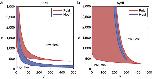 Figure 6. Different durations of oscillations can be found for changing p1 or the initial levels of r.(a) Shows simulations with fixed r(0)=0 but changing p1. (b) Shows simulations with fixed p1=290 but changing r(0). Here, m(0)=0 and p(0)=0. Other parameters are p0=390, τ=29 min, bl=ln(2)/20 min−1, bu=ln(2)/35 min−1, n0=n1=m0=m1=5, r0=100, r1=300, μp=22 min, μr=1,000 min. |