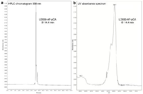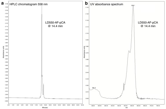 Figure 1—figure supplement 4. HPLC chromatogram (A) and UV absorbance spectrum (B) of LD550-AF-pCA.DOI: http://dx.doi.org/10.7554/eLife.19088.007 |