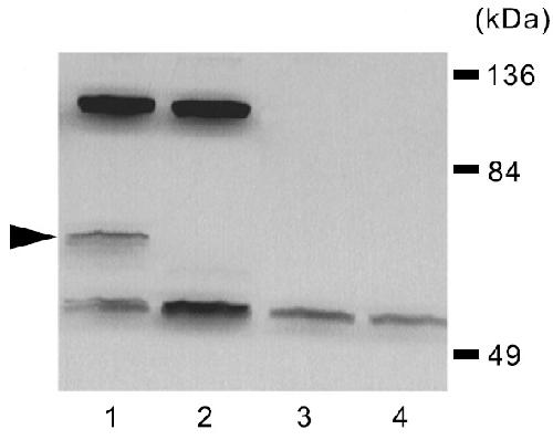 respectively. The arrow indicates the immunoreactive 57 kDa