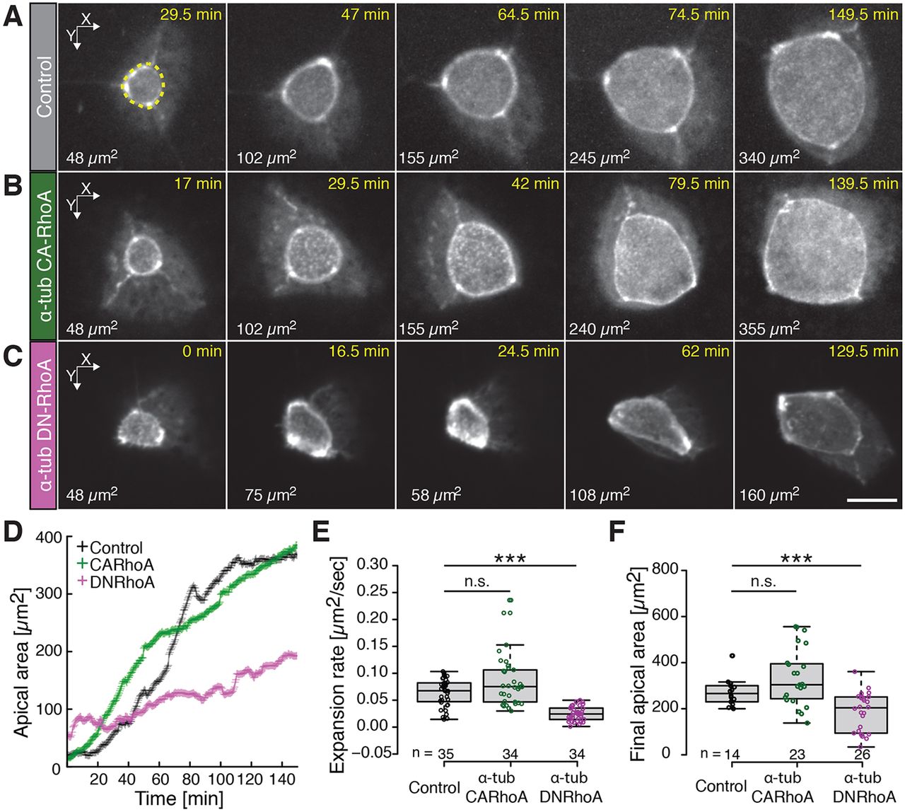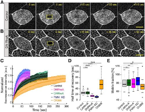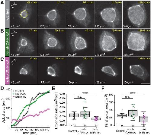 RhoA regulates actin network dynamics during apical surface emergence in multiciliated epithelial cells.