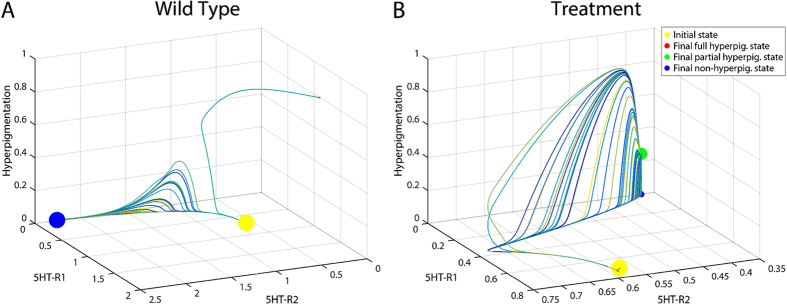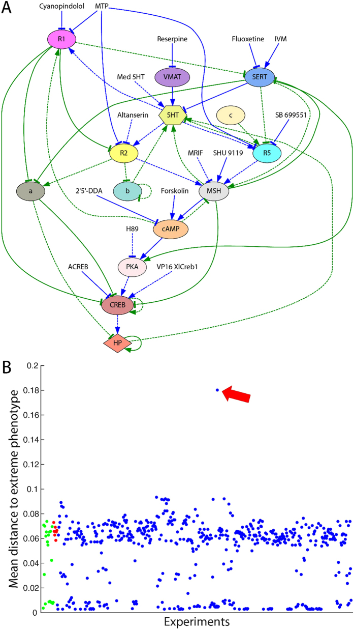 Progress in regenerative medicine requires reverse-engineering cellular control networks to infer perturbations with desired systems-level outcomes. Such dynamic models allow phenotypic predictions for novel perturbations to be rapidly assessed in silico. Here, we analyzed a Xenopus model of conversion of melanocytes to a metastatic-like phenotype only previously observed in an all-or-none manner. Prior in vivo genetic and pharmacological experiments showed that individual animals either fully convert or remain normal, at some characteristic frequency after a given perturbation. We developed a Machine Learning method which inferred a model explaining this complex, stochastic all-or-none dataset. We then used this model to ask how a new phenotype could be generated: animals in which only some of the melanocytes converted. Systematically performing in silico perturbations, the model predicted that a combination of altanserin (5HTR2 inhibitor), reserpine (VMAT inhibitor), and VP16-XlCreb1 (constitutively active CREB) would break the all-or-none concordance. Remarkably, applying the predicted combination of three reagents in vivo revealed precisely the expected novel outcome, resulting in partial conversion of melanocytes within individuals. This work demonstrates the capability of automated analysis of dynamic models of signaling networks to discover novel phenotypes and predictively identify specific manipulations that can reach them.
