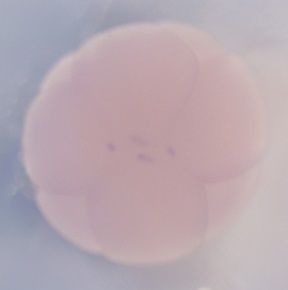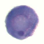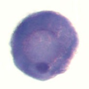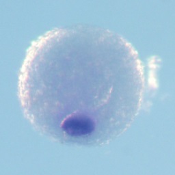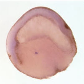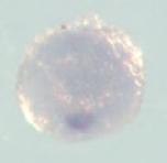 trank1 (tetratricopeptide repeat and ankyrin repeat containing 1) gene expression in Xenopus laevis embryo, assayed via in situ hybridization, oocyte stage i, vegetal view. |