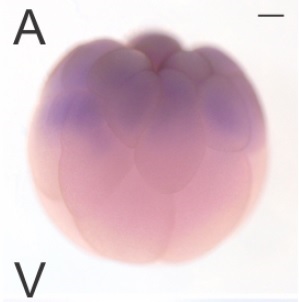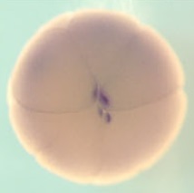 rnf38 ( ring finger protein 38 ) gene expression in Xenopus laevis embryo, assayed via in situ hybridization, NF stage 6, vegetal view |