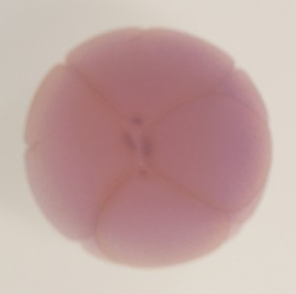 e2f1 (E2F transcription factor 1) gene expression in Xenopus laevis embryo, assayed via in situ hybridization, NF stage 8, vegetal view. |