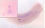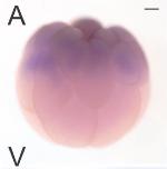 rnf38 ( ring finger protein 38 ) gene expression in Xenopus laevis embryo, assayed via in situ hybridization, NF stage 16, lateral view, anterior right, dorsal up. |