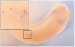 tob2 (transducer of ERBB2, 2) gene expression in Xenopus laevis embryo, assayed via in situ hybridization, NF stage 32, lateral view, anterior right, dorsal up. |