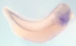 spire1 ( spire-type actin nucleation factor 1 ) gene expression in bissected Xenopus laevis embryo, assayed via in situ hybridization, NF stage 16, lateral view, anterior right, dorsal up. |