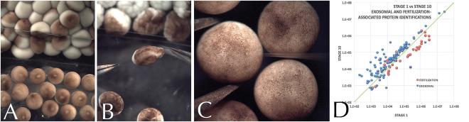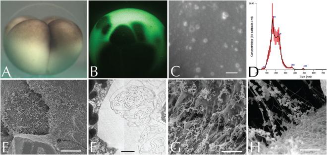 Exosomes are small extracellular vesicles (EVs) secreted by many cell types in both normal and pathogenic circumstances. Because EVs, particularly exosomes, are known to transfer biologically active proteins, RNAs and lipids between cells, they have recently become the focus of intense interest as potential mediators of cell-cell communication, particularly in long-range and juxtacrine signaling events associated with adaptive immune function and progression of cancer. Among the EVs, exosomes appear particularly adapted for long-range delivery of cargoes between cells. Because of their association with disease states, the exciting potential for exosomes to serve as diagnostic biomarkers and as target-specific biomolecule delivery vehicles has stimulated a broad range of biomedical investigations to learn how exosomes are generated, what their cargoes are, and how they might be tailored for uptake by remote targets. Addressing these questions requires experimental models in which biochemically useful amounts of material can be harvested, gene expression easily manipulated, and interpretable biological assays developed. The early Xenopus embryo fulfills these model-system ideals in an in vivo context: during morphogenesis the embryo develops several large, fluid-filled extracellular compartments across which numerous tissue-specifying signals must cross, and which are abundantly endowed with exosomes and other EVs. Importantly, certain surface-facing tissues avidly ingest EVs during gastrulation. Recent work has demonstrated that EVs can be isolated from these interstitial spaces in amounts suitable for proteomic and transcriptomic analysis. With its large numbers, great cell size, well-understood fate map, and tolerance of a variety of experimental approaches, the Xenopus embryo provides a unique opportunity to both understand and manipulate the basic cell biology of exosomal trafficking in the context of an intact organism.