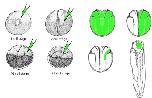Use of explants to determine the role of proteins in tissue repulsion. The left side of the figure shows a wholemount in situ hybridization of a bisected Xenopus embryo with a probe for ephrinB1 expression; showing expression in the involuting marginal zone. The right side is a schematic depicting the BCR/mesoderm repulsion assay. Four cell stage embryos are injected with either mRNA or MOs or both, along with fluorescent dextran as a tracer. The mesoderm (involuting marginal zone) is removed and placed upon the blastocoel roof (BCR) explant from an uninjected embryo. Light and epifluorescence microscopy allows for visualization of whether the two explants mix or repulse one another