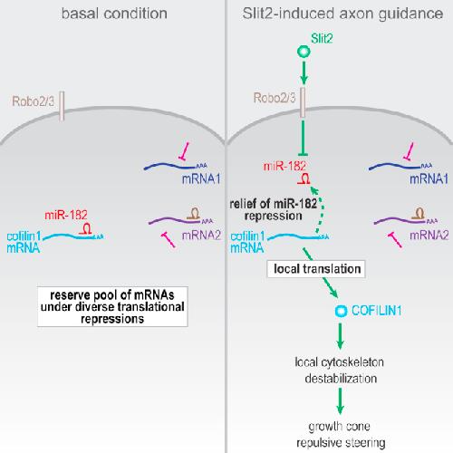 miR-182 Regulates Slit2-Mediated Axon Guidance by Modulating the Local Translation of a Specific mRNA.