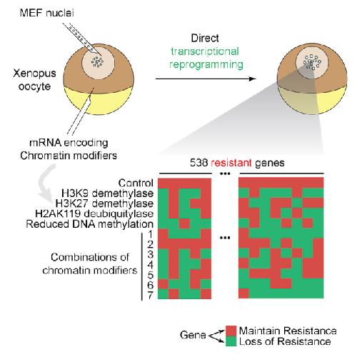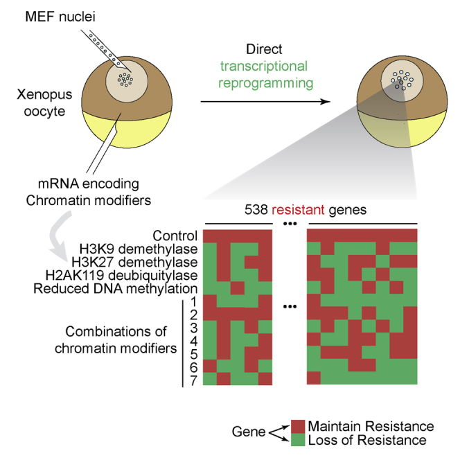 Graphical Abstract. Keywords: transcriptional reprogramming; oocyte; xenopus; nuclear transfer; resistance; epigenetic; chromatin. |