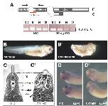 Fig. 3. Mutation of the C-clamp of XTcf-1E leads to a loss of isoform specificity [continued] (C,D) XTcf1E-CRVRF induces double axis formation in 29% of the injected embryos