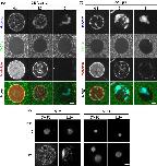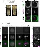 Figure 4. Nuclear F-actin maintains chromatin binding to the nuclear envelope in well-grown nuclei. (A and B) Permeabilized sperm were added to ICE supplemented with various concentrations of cytochalasin B (CB: 0.1, 1.0 or 10 μg/mL) (A) or latrunculin A (LatA: 0.1, 0.3, or 1 μm) (B) and incubated for 120 min. Nuclei were then fixed; stained with Hoechst 33342, DiOC6 and DY-590-phalloidin; and observed by confocal microscopy. Scale bars, 10 μm. (C) Nuclei isolated from embryos at stage 7 (blastula) and stage 11 (gastrula) were added to IFE supplemented with latrunculin A (LatA: 1 μm) or solvent (DMSO) and incubated for 120 min. Nuclei were then fixed, stained with Hoechst 33342, and observed by wide-field fluorescence microscopy. Scale bar, 10 μm. |