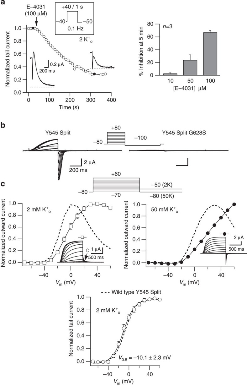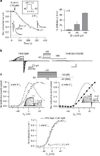 Es-Salah-Lamoureux, Blockade of permeation by potassium but normal gating of the G628S nonconducting hERG channel mutant. 2011, Pubmed , Xenbase