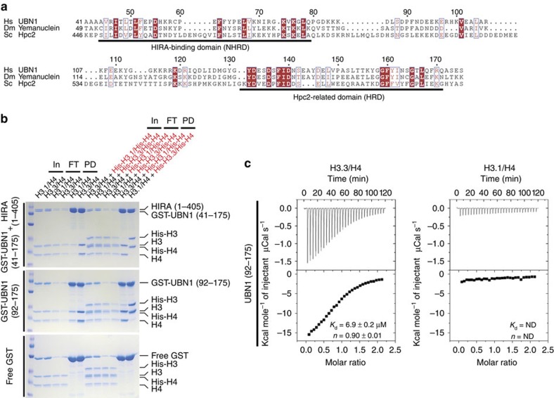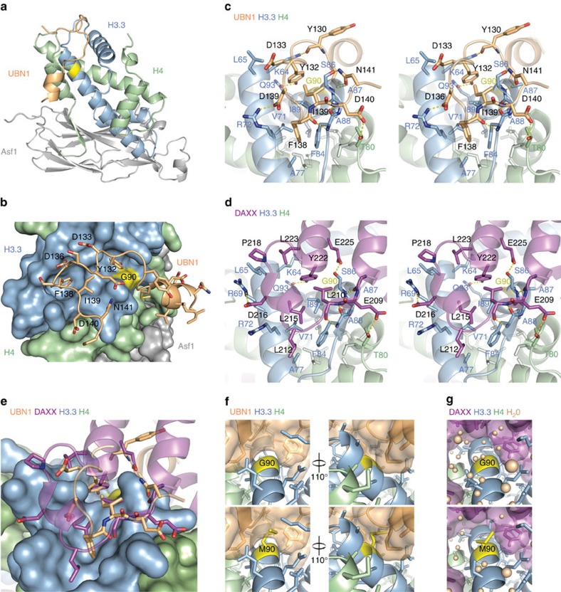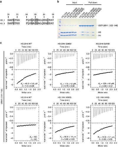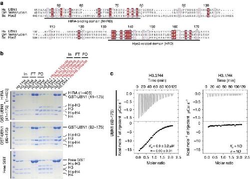 Ubinuclein-1 confers histone H3.3-specific-binding by the HIRA histone chaperone complex.